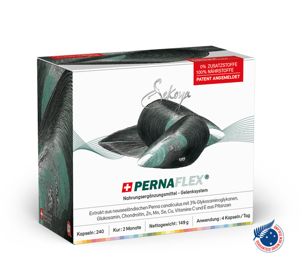 En 2017, nous sommes arrivés à la quintessence de formules que nous avons dû breveter(2). Bien sûr, la base est toujours constituée d'un extrait de moules aux orles verts obtenu par une lyophilisation à très basse température. Les autres composés de Pernadol® et Pernaflex® sont naturels et fonctionnent en synergie pour participer à la formation normale de collagène et assurer la fonction normale des cartilages. Un ensemble de micronutriments qui régulent le cycle naturel de nettoyage et construction de la capsule articulaire
